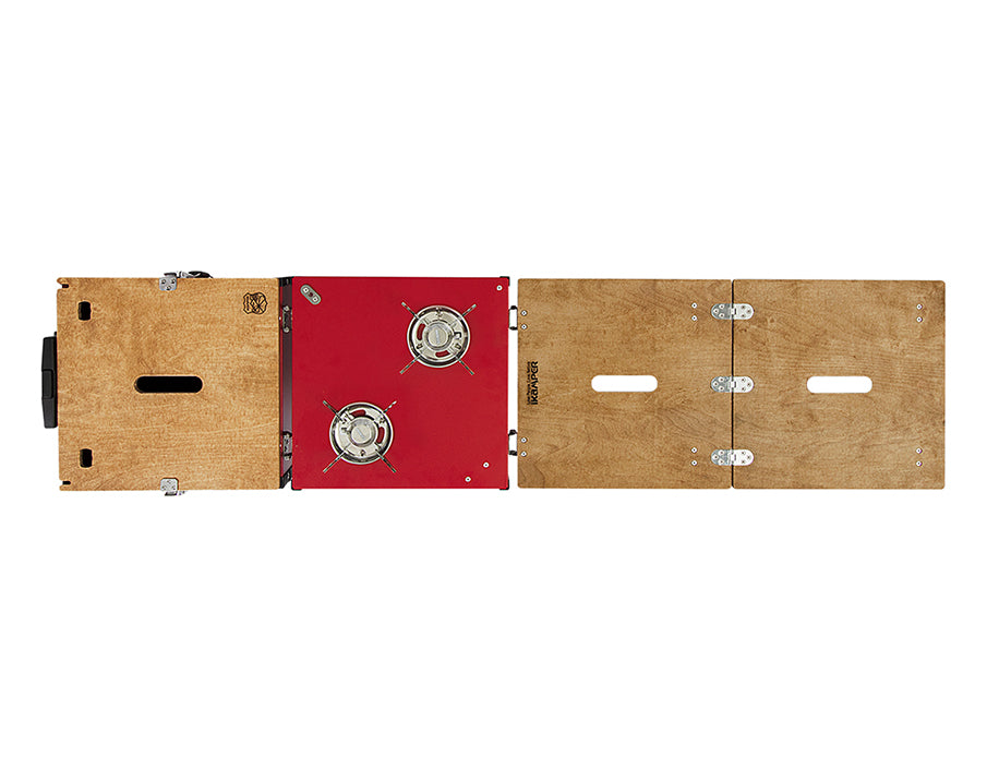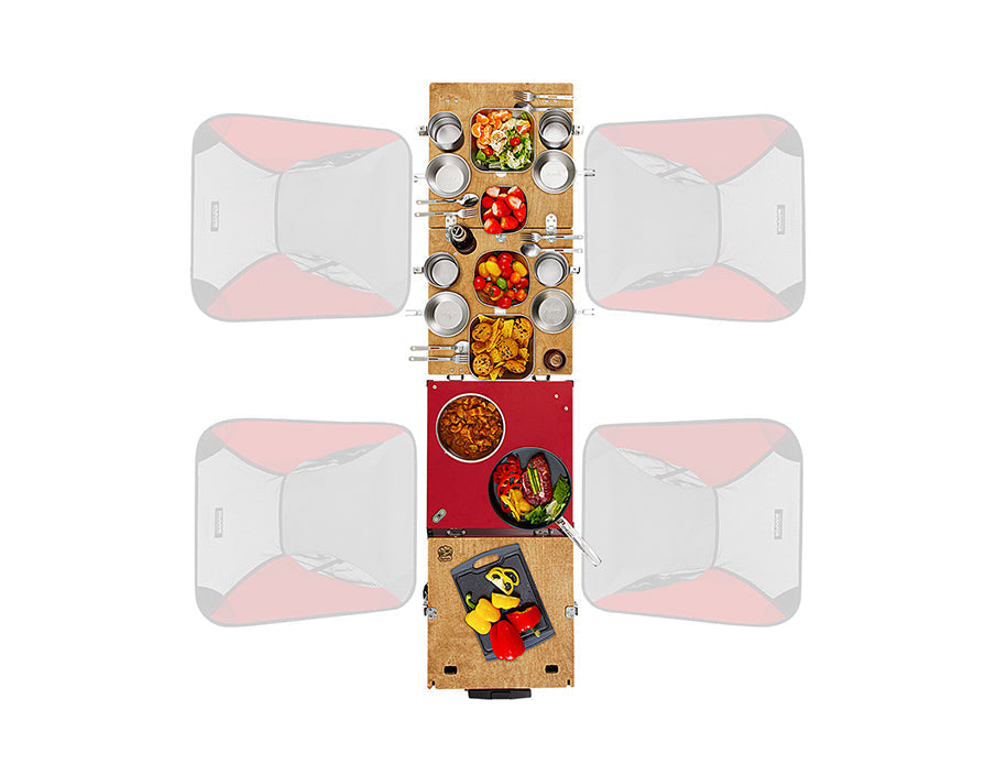 - All-in-One Functionality: Integrated stove, fold-out tables, and internal storage in one sleek unit.