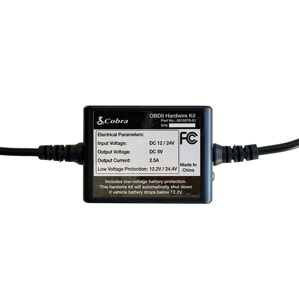 Create a clean, professional installation for your Cobra SC Series dash cam with this easy-to-use OBD-II Constant Power Cable. Designed for plug-and-play simplicity, this kit powers your dash cam directly from your vehicle’s OBD-II port—no hardwiring or splicing required. It also unlocks Parking Mode features while protecting your vehicle’s battery with smart low-voltage detection.