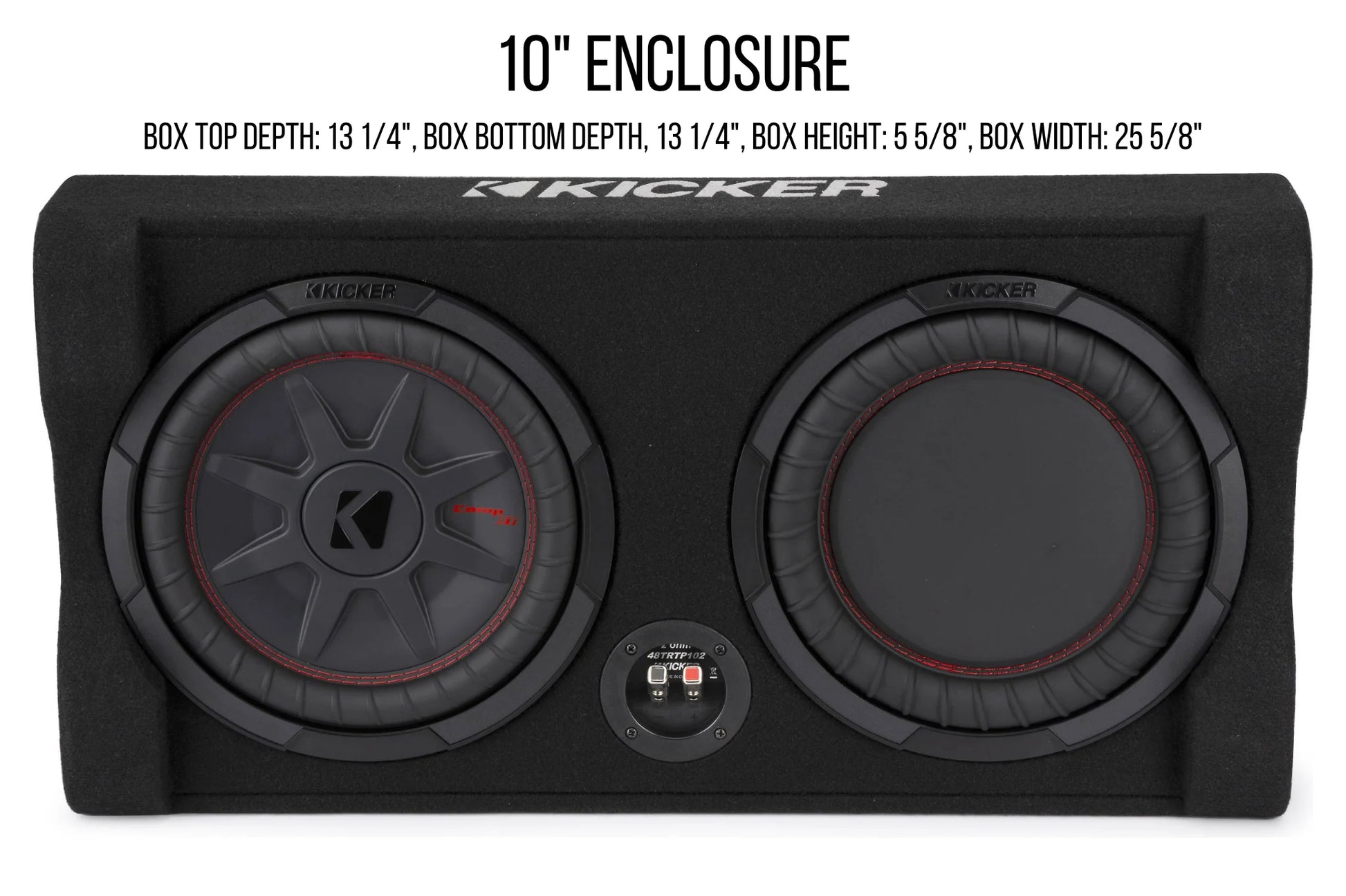 - 10" Subwoofer Enclosure – Top/Bottom Depth: 13 1/4", Height: 5 5/8", Width: 25 5/8"
