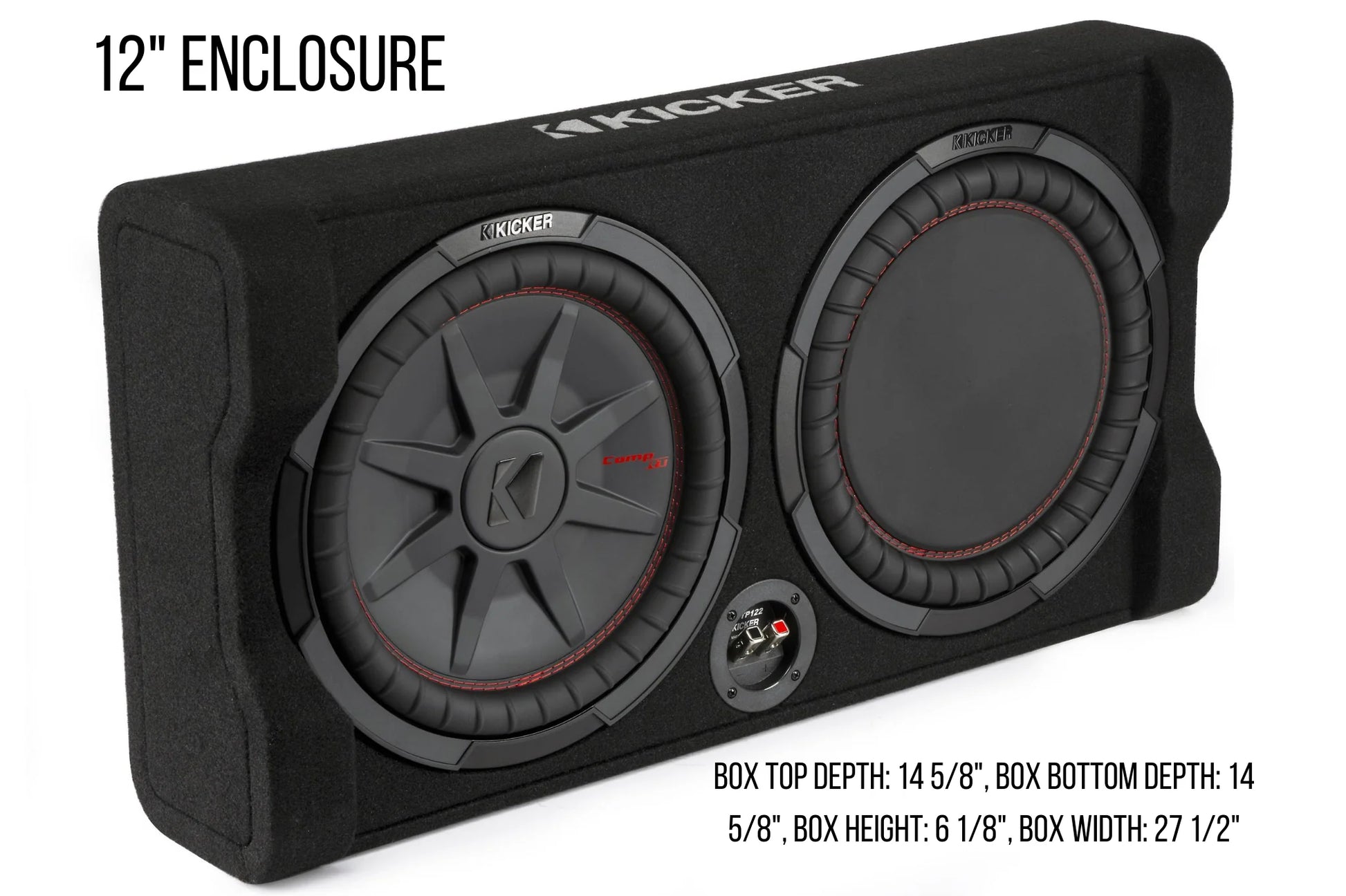 - 12" Subwoofer Enclosure – Top/Bottom Depth: 14 5/8", Height: 6 1/8", Width: 27 1/2"