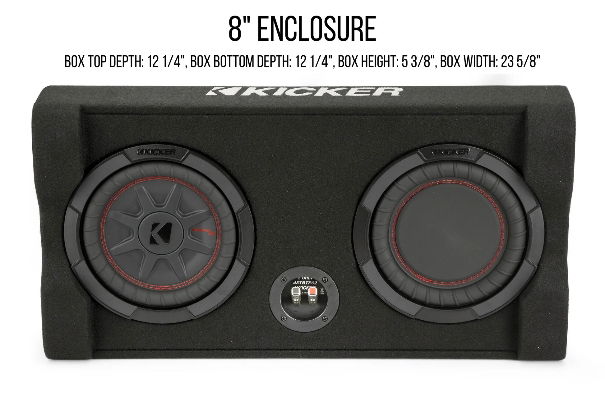 - 8" Subwoofer Enclosure – Top/Bottom Depth: 12 1/4", Height: 5 3/8", Width: 23 5/8"