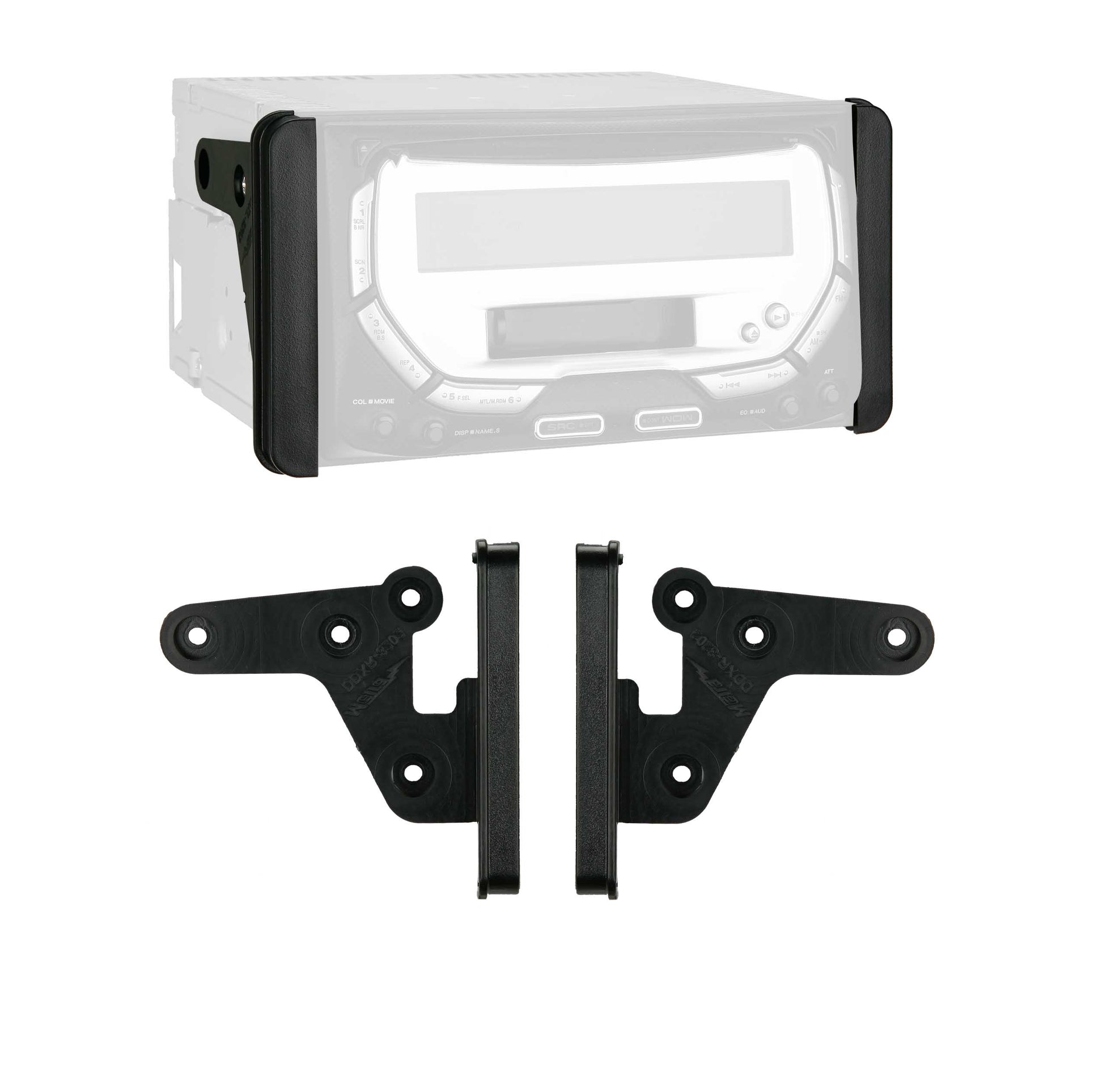 Constructed from durable ABS plastic with a black textured finish, the kit is designed to blend naturally with factory dash trim while providing long-lasting strength and stability. The included trim panel and mounting hardware help ensure that your new stereo sits snugly and securely, giving you a refined installation that looks like it came straight from the factory.